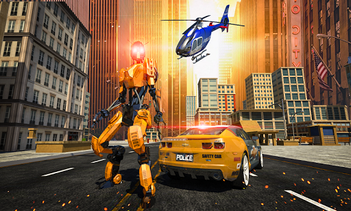 Dans ce jeu, vous utilisez le super-héros de Police War Police et d’autres compétences en matière de chasse, de mobilisation et de course. Vous pouvez vous transformer en hélicoptère de guerre furieux, survoler la ville, effectuer des acrobaties et vous transformer en une machine à tuer époustouflante et en épaves de robots. Jeu d'action militaire d'hélicoptère.